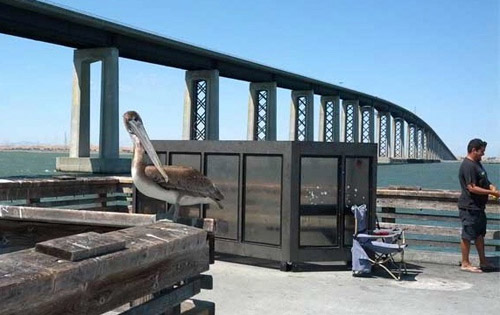Talked to office manager, who showed me of a picture of a pelican found in the area tangled in fishing line, back in March.